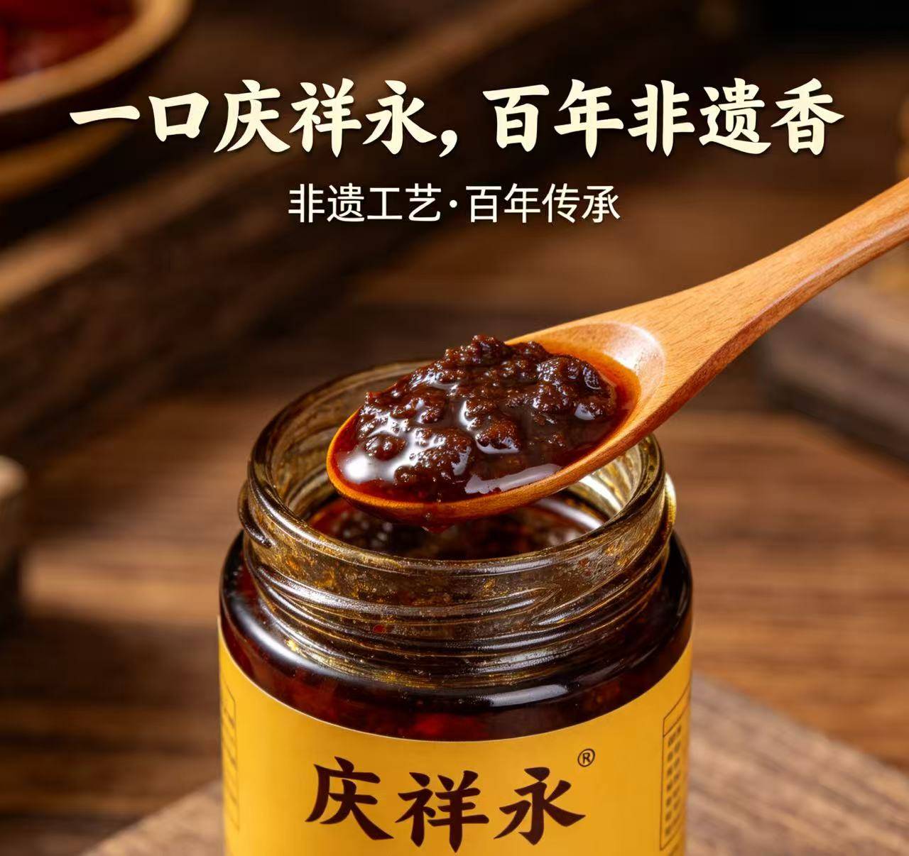 百年非遗,酱香酿匠心 “庆祥永”始创于光绪二十五年,凭借“春曲、夏酱、秋油”的古法秘诀与“三伏晒酱”的独门工艺,成为津门酱品经典。匠人恪守“水为酱之骨”的古训,取南运河清冽活水,配以上等小麦,经“春准备、夏制曲、秋翻晒、冬成酱”的完整工艺周期,历经日晒夜露、人工翻醅,终酿出“红润如玛瑙,咸甜蕴鲜香”的地道酱品。作为非遗资源,庆祥永古法面酱酿造技艺保留着纯手工的匠心精髓,其酱面浮而不溢、咸中回甘,不仅是淄博烧烤等特色美食的御用酱料,更成为运河文化孕育的味觉传奇,诠释“一口庆祥永,百年非遗香”的品牌内涵。