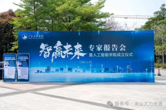 | 3 月 18 日,广东东软学院 “智赢未来” 专家报告会暨人工智能学院成立仪式盛大启幕,恰逢南海大学城人文科创带正式启动次日,这场教育与科技的深度融合,为佛山乃至大湾区 AI 产业发展注入全新活力。澳业人力资源创始人之一康鑫昊先生荣幸获聘该校特聘创业导师,与一众行业专家、企业代表共同见证东软人工智能学院启航,也正式开启以专业人力服务赋能 AI 创业人才培育的新征程。